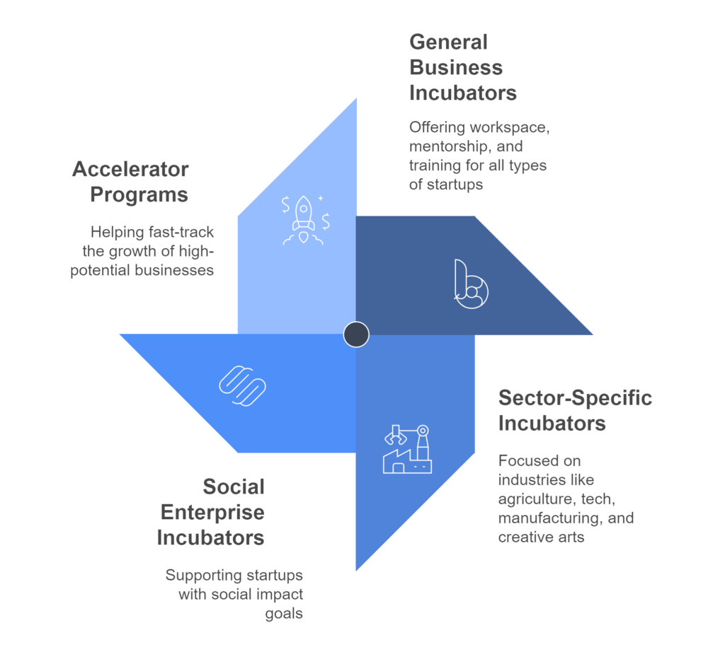 Discover the right incubator to nurture your business vision. Whether you’re seeking comprehensive mentorship through our General Business Incubators, rapid growth via our Accelerator Programs, support for your social impact venture, or specialized guidance in your industry sector—we connect entrepreneurs with the resources they need to thrive.
